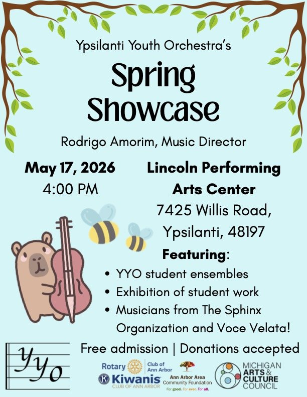 Join us in celebrating the end of another YYO season! The Spring Showcase will feature YYO student ensembles and classes (ages 4-18), as well as special guest musicians from The Sphinx Organization and Voce Velata. Admission is free; donations accepted.
